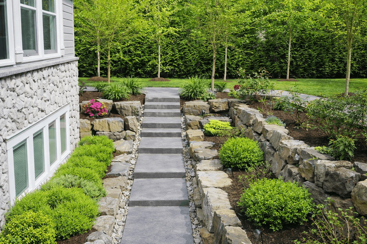 Découvrez d’autres projets d’aménagement extérieur réalisés par notre équipe : gazon, terrasses bois, jardins et espaces paysagers.