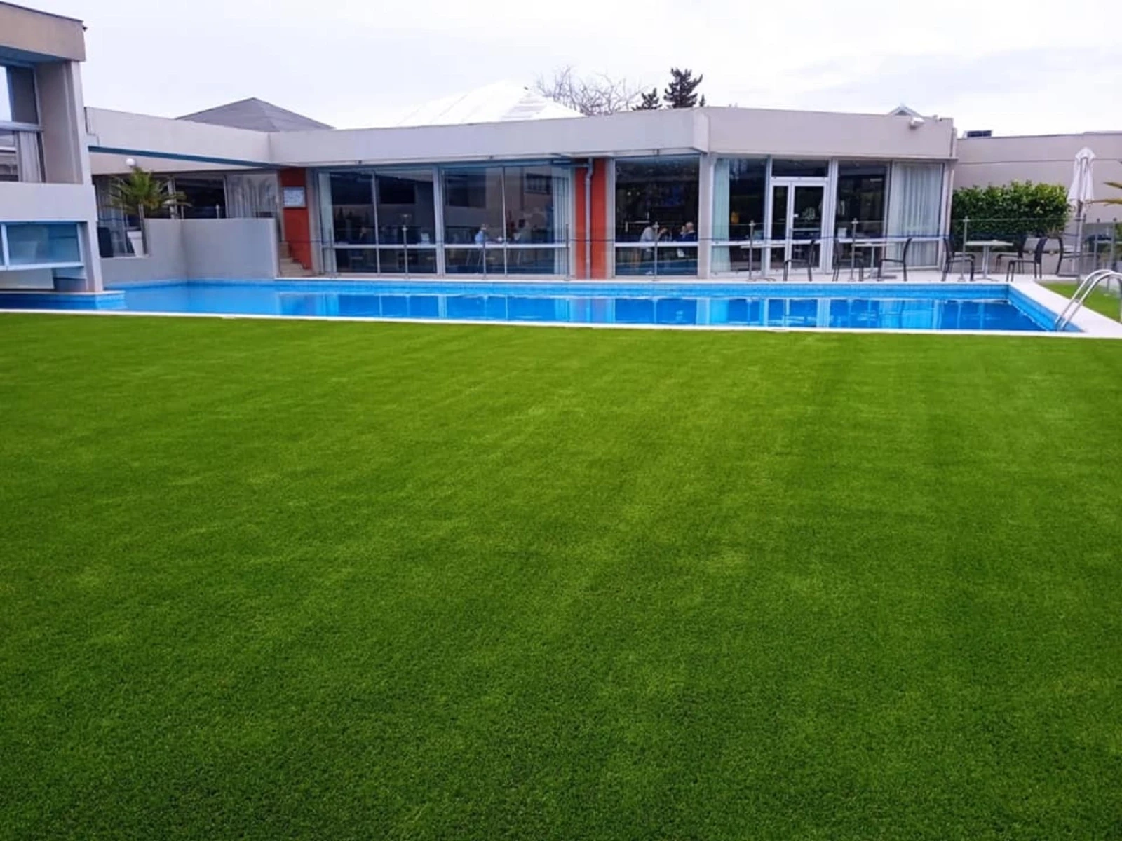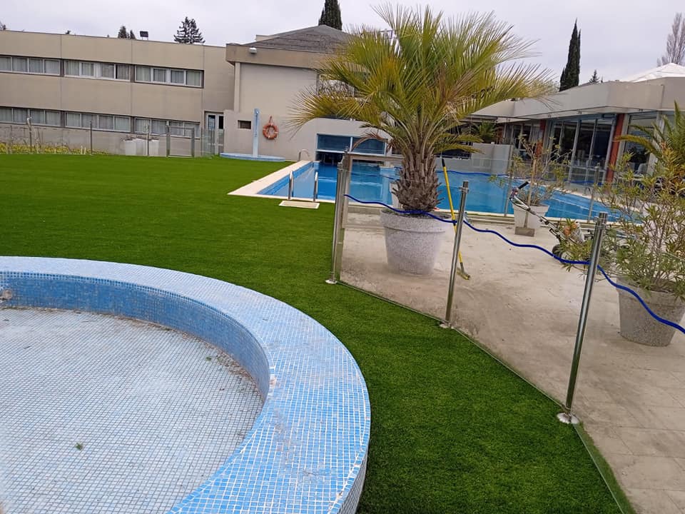 Exemples de réalisations en gazon synthétique pour jardins, terrasses et abords de piscine.